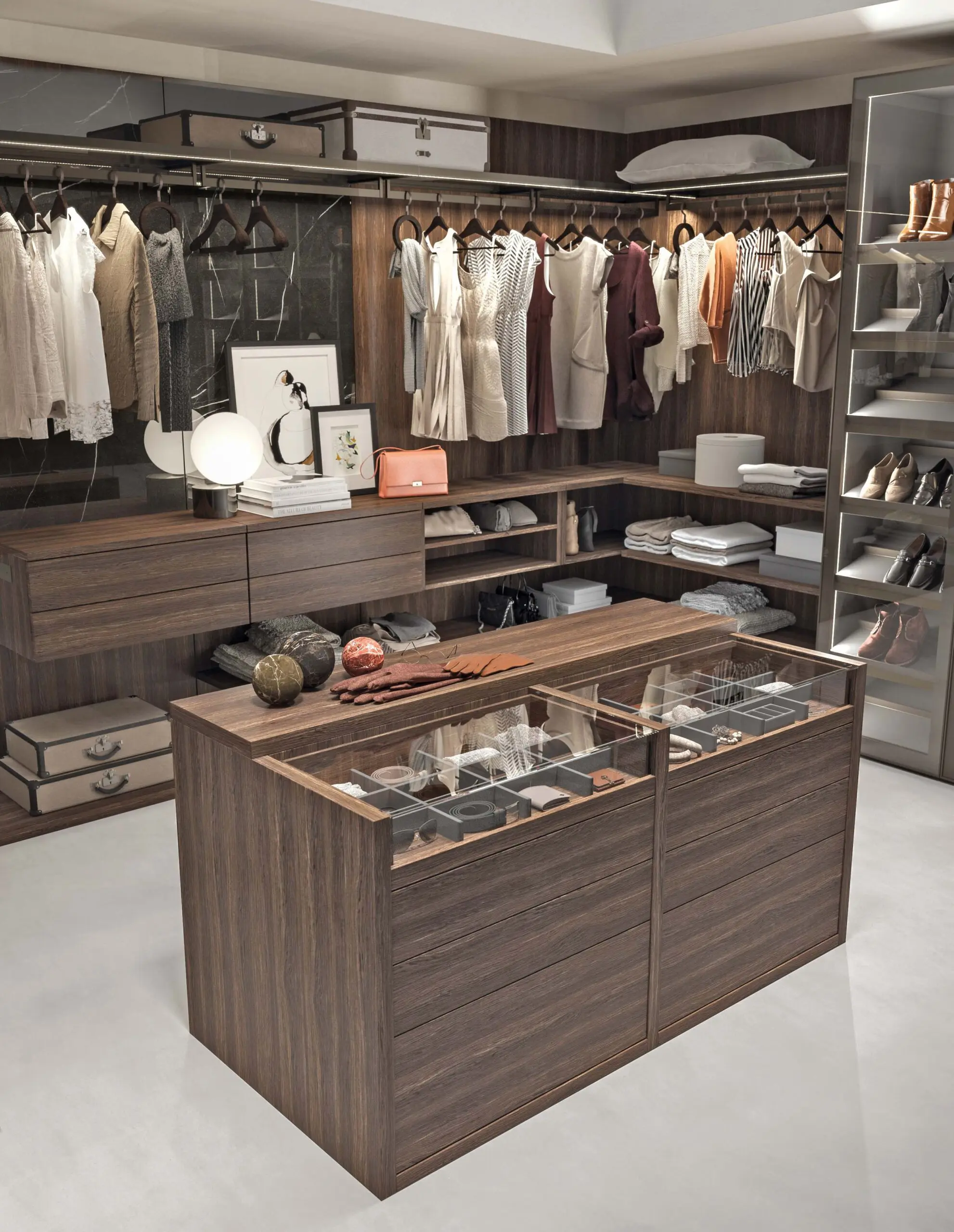 Un esempio iconico è Logica Celata, evoluzione della serie Logica: un sistema ingegnerizzato che ottimizza movimenti, spazi e organizzazione, permettendo di celare le funzioni con un gesto elegante.