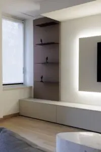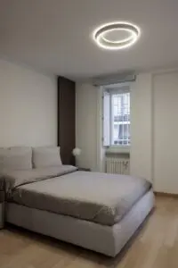 La zona notte segue lo stesso filo conduttore: ambienti essenziali, colori tenui e scelte d’arredo su misura per garantire massimo benessere. L’illuminazione studiata e gli elementi di design contribuiscono a un’atmosfera rilassante e moderna, ideale per chi cerca soluzioni di arredamento contemporaneo a Torino.