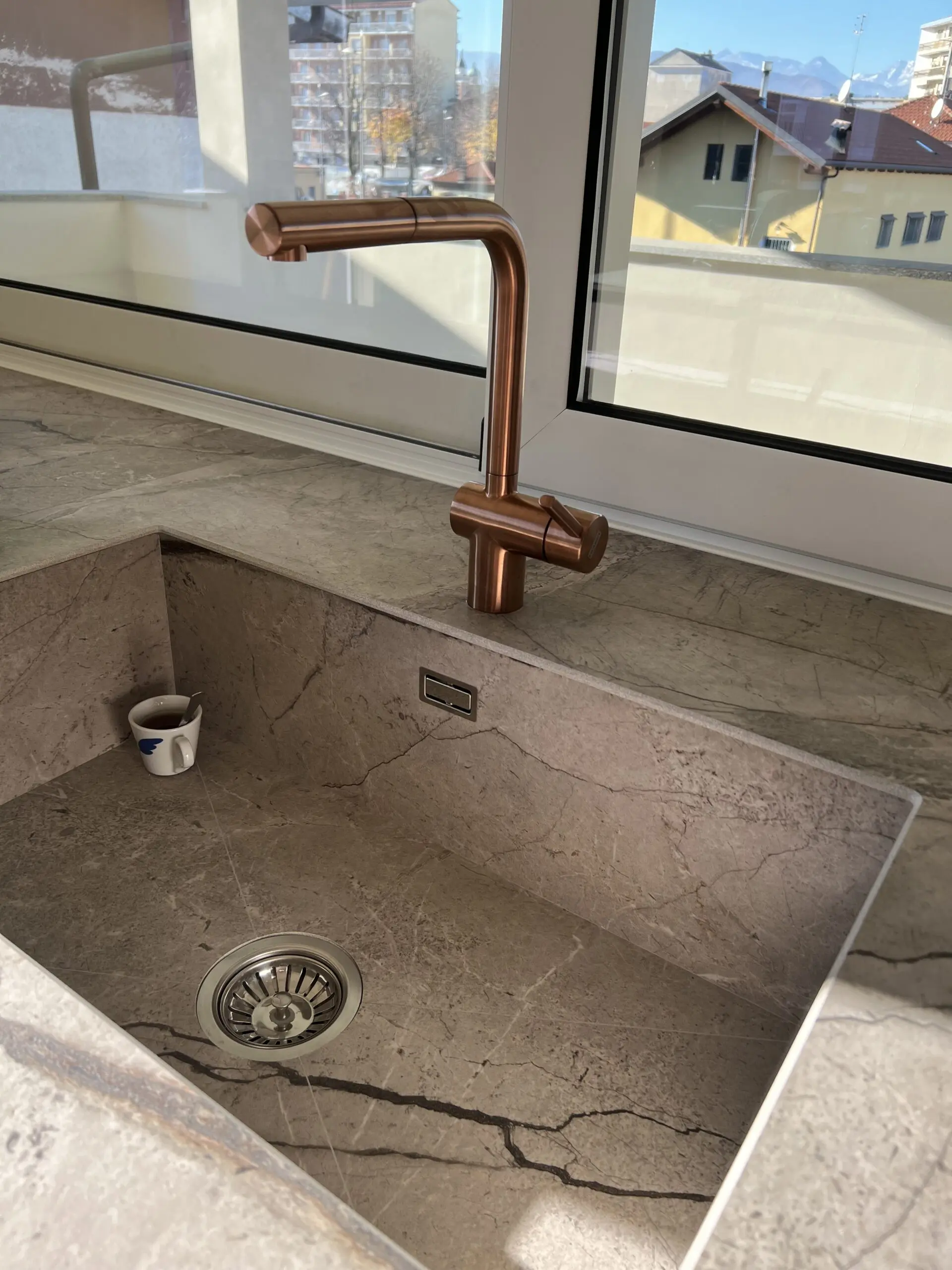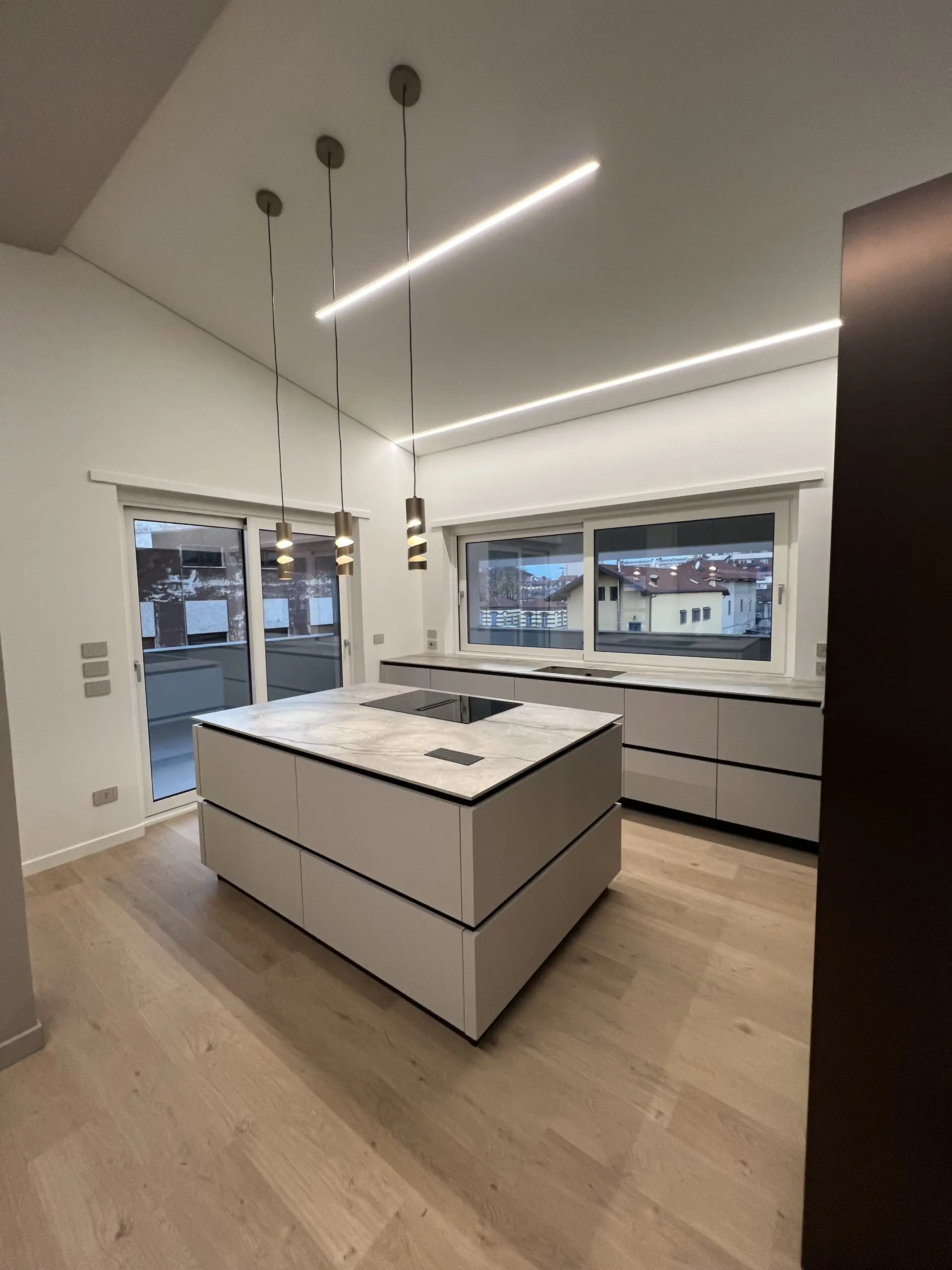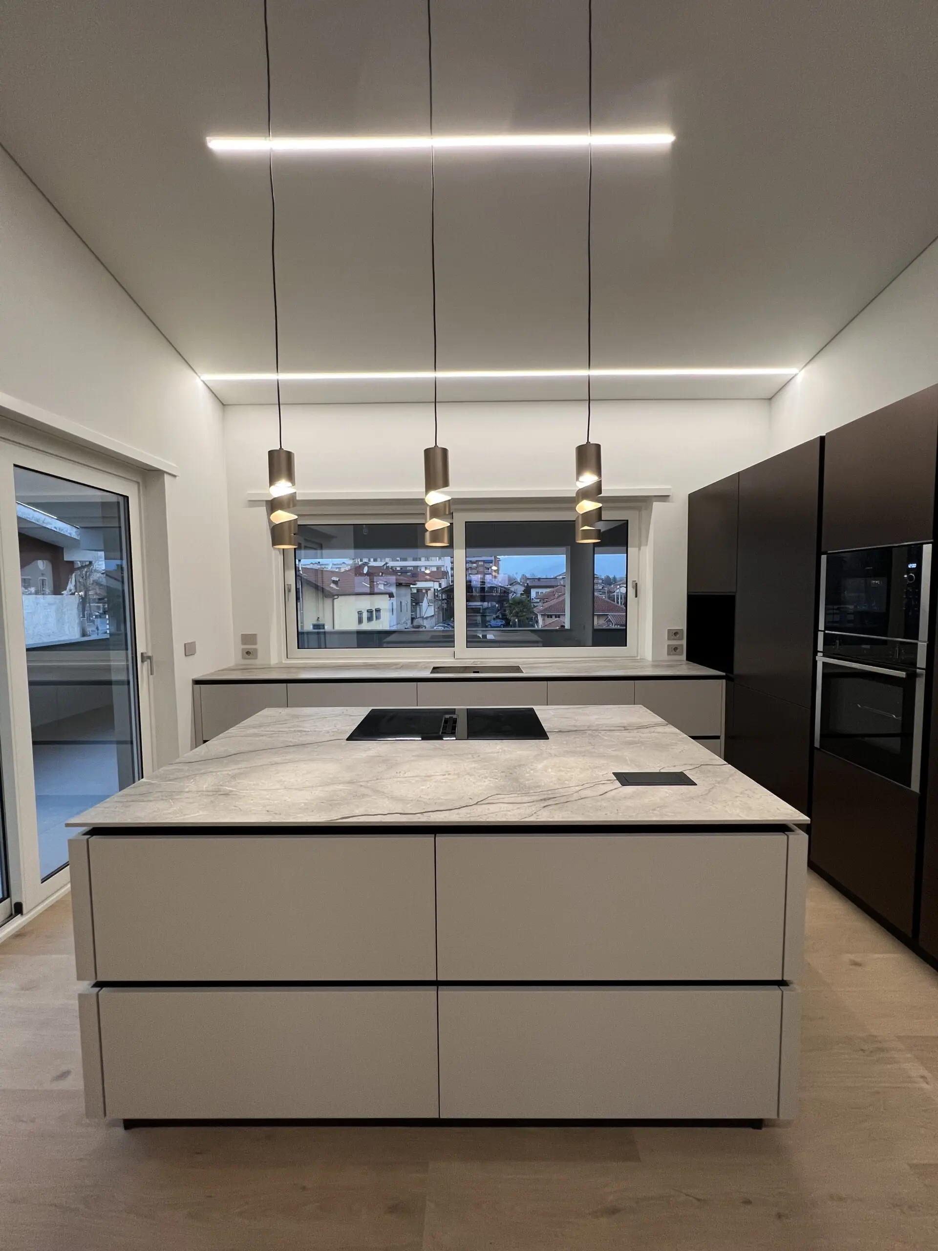 Il progetto CASAFC25 a Torino rappresenta un perfetto equilibrio tra estetica moderna e funzionalità. La cucina, cuore pulsante di questo ambiente, è caratterizzata da un’isola centrale con piano in marmo, ideale per chi cerca eleganza e praticità in un’unica soluzione. La combinazione di finiture in bianco lucido e dettagli marroni scuri crea un contrasto raffinato, mentre l’illuminazione a LED integrata conferisce un tocco di classe e visibilità ottimale. Con un layout spazioso, la cucina di CASAFC25 è pensata per ottimizzare ogni angolo, con cassetti ampi e ben organizzati, per un’esperienza di utilizzo comoda e funzionale.